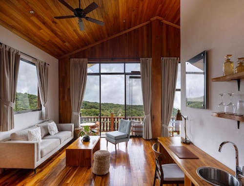Rooms and suites lean rustic but comfortable. Some with volcano views and verandas for slow mornings. It’s the kind of place where you won’t hear city noise, just wind in leaves, birdcalls, maybe distant waterfalls.